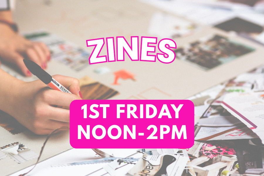 Join us on your lunch hour for an afternoon of zines! Share your current zine project and/or bring in your zine collection to share inspiration with the group.
